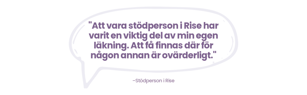 Är du nästa stödperson i Rise? Kontakta info@rise-sverige.se för mer information och ansökan.