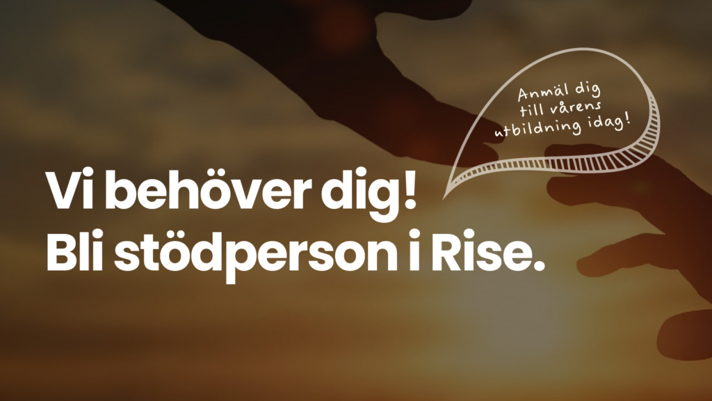 Är du nästa stödperson i Rise? Kontakta info@rise-sverige.se för mer information och ansökan.