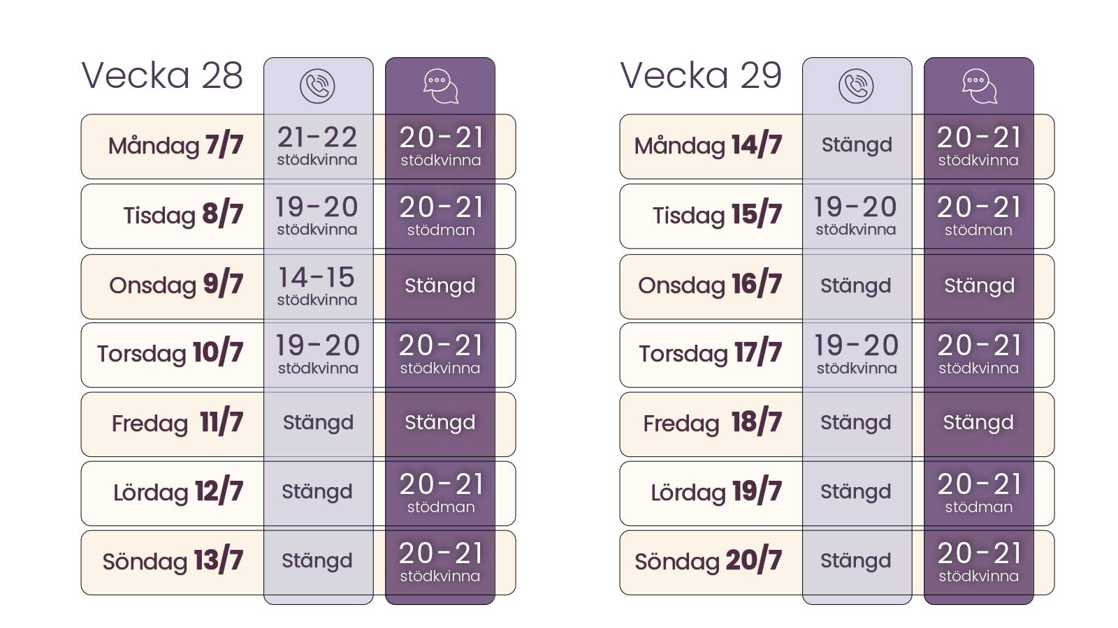 Öppettider i stödlinjen i sommar (vecka 28 – 33)