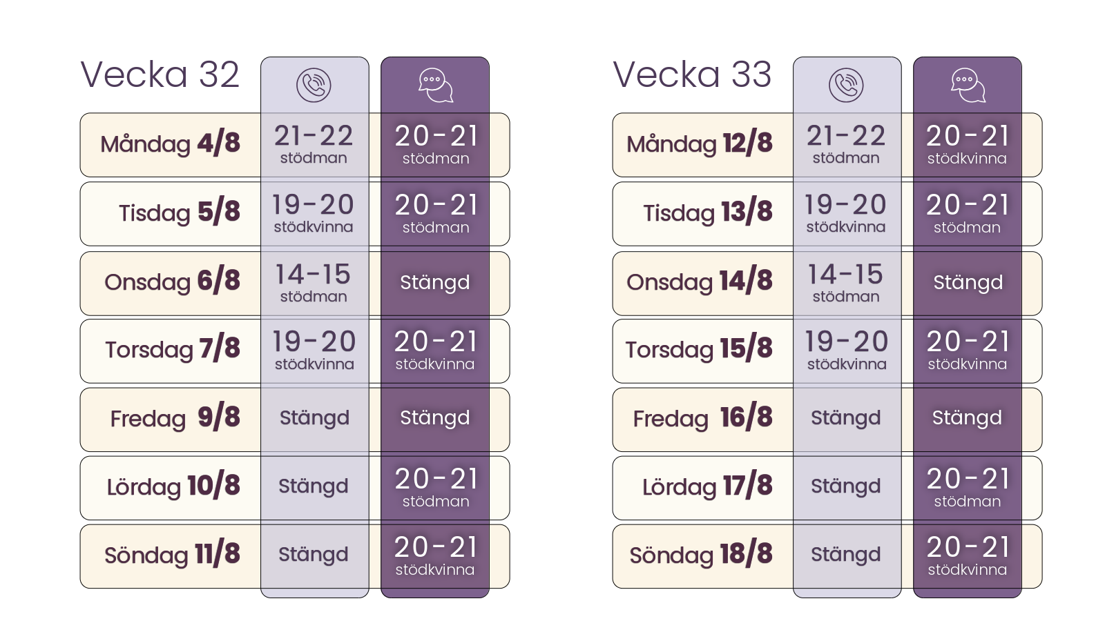 Under sommaren håller vi öppet i både stödtelefonen och stödchatten.