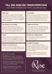 Här hittar du vårt samlade material för yrkesverksamma – foldrar, posters och informationsblad som du kan ladda ner som PDF för att spara eller skriva ut. Materialet är framtaget för att sprida kunskap, ge stöd i samtal och bidra till ett tryggare bemötande.